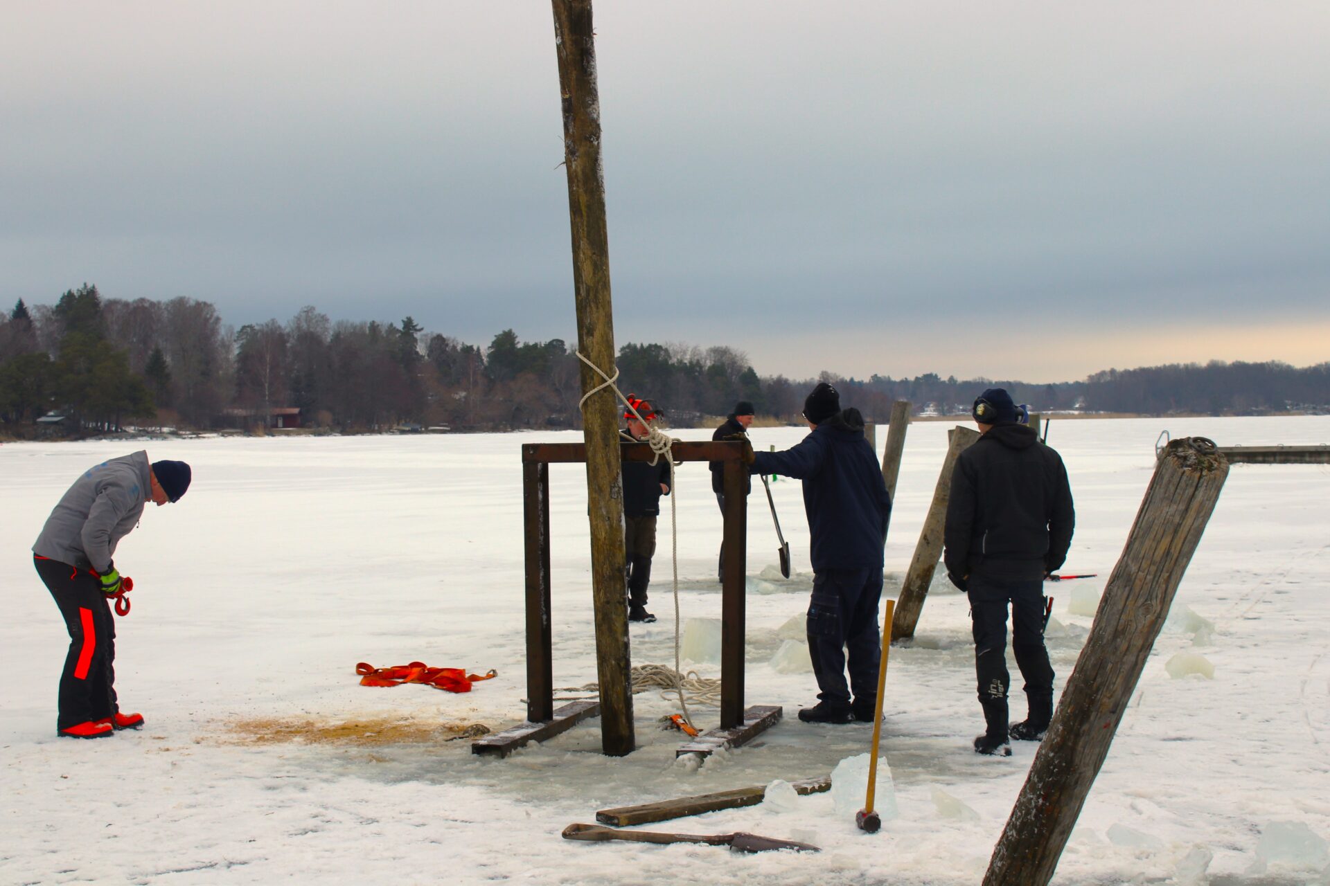 Även om vintern är en lugnare period på Klinten så arbetas det en del även då. Här blir det nya och upp rättade akterstolpar.